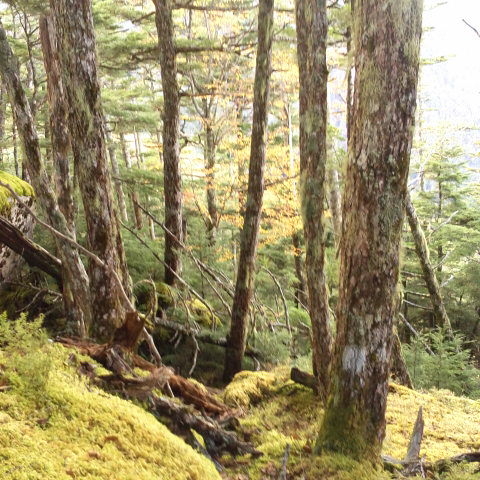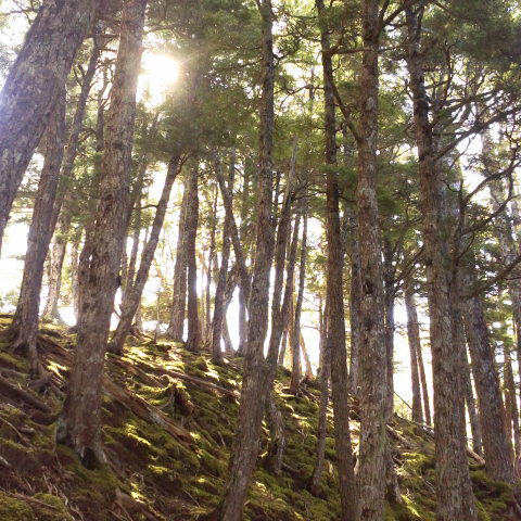 燕頭山付近のコメツガの林と苔です。