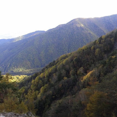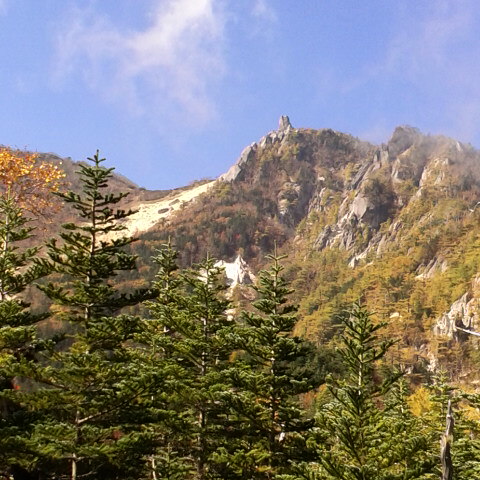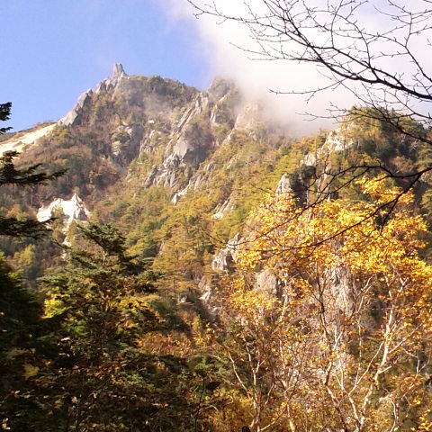 小屋から10分位御座石温泉方面に降りた所からの地蔵岳です。カラマツの黄葉も綺麗です。 細田倖市