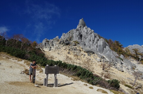 昨日、地蔵岳の標柱が新しく立ちました。 場所はさいの河原、お地蔵さんたちの少し下。 昨日お泊まりのボランティアの方々がドンドコ沢のルートを通って持ってきてくださいました。 今日は秋の澄んだ空気のなか、オベリスクが青空に映えてきれいでした。 筆 アオト