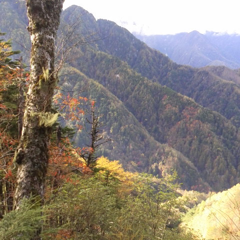 御座石温泉から一時間半位登った辺りのサラサドウダンの紅葉です。 細田倖市