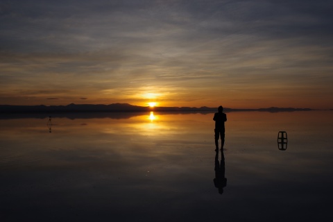 ボリビアのウユニ塩湖。標高3,800mに位置しながら、ほぼ360°水平線が見渡せる広大な塩湖に来ています。今は雨季なので、無風の湖面は鏡張りとなり、空の模様を忠実に映し出します。昼・夕方・夜・朝とそれぞれに見せる表情に魅せられ、2日のうちに足を運ぶこと3回。世界の絶景に常に数えられる名所ですが、本当...