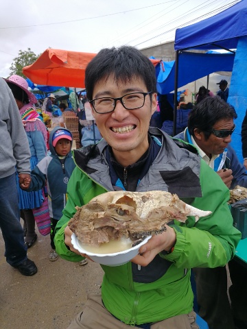 みなさん、リャマって知ってますでしょうか?ラクダやアルパカの仲間のかわいらしいやつです。 そのリャマですが、昨年一緒に働いた有馬くんが、 「ウユニに着いたらリャマ丼売ってるんで、ぜひ食べてください」 と言うので、市場に食べに行ってみました。 「お、どうやらリャマ丼らしきものが...」と近づいてみれば...