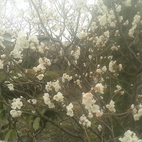 今日はときどき小雨、時には薄日が射すこさむい天気です。山は雪かな。庭の小粒の実がつくサクランボの花が満開です。花梅や甲州小梅の花や豊後梅の花が満開で庭を彩り綺麗です。福寿草は散り水仙が咲きだしました。ヒヤシンスの花も満開です。ハクモクレンは後一週間位かな。昨日と違い今日は風が冷たいです。 細田倖市
